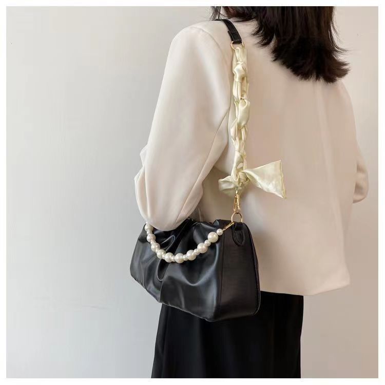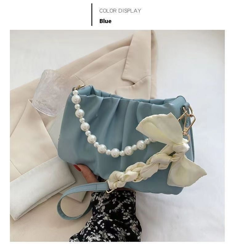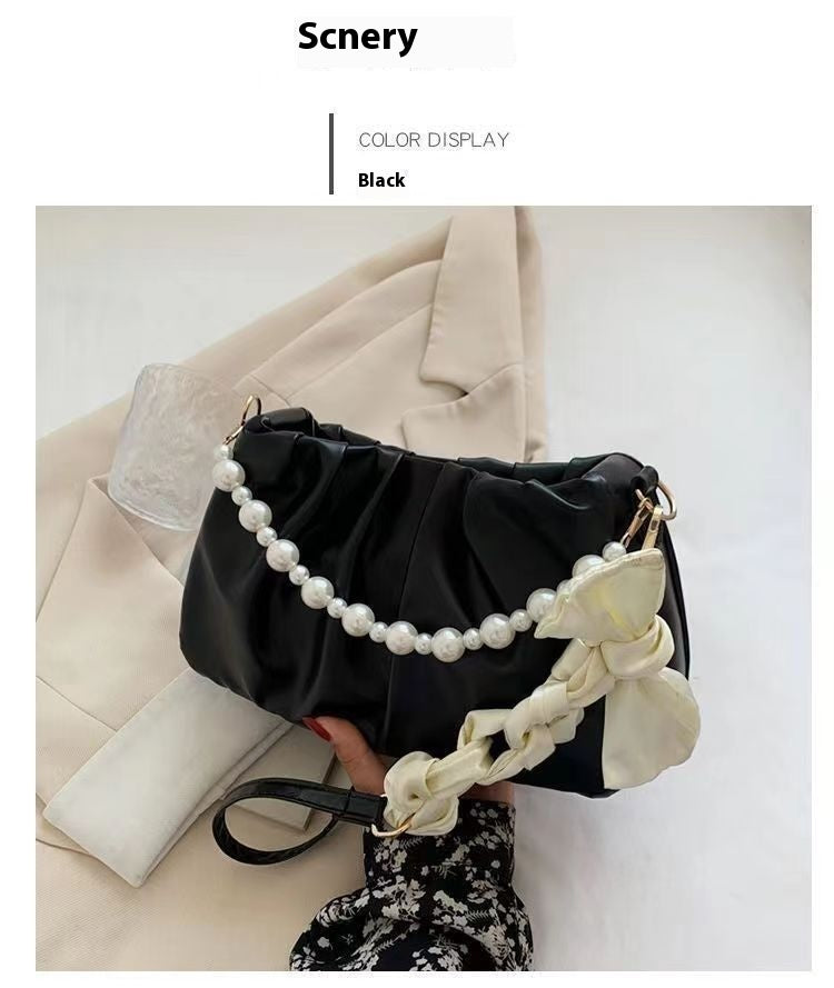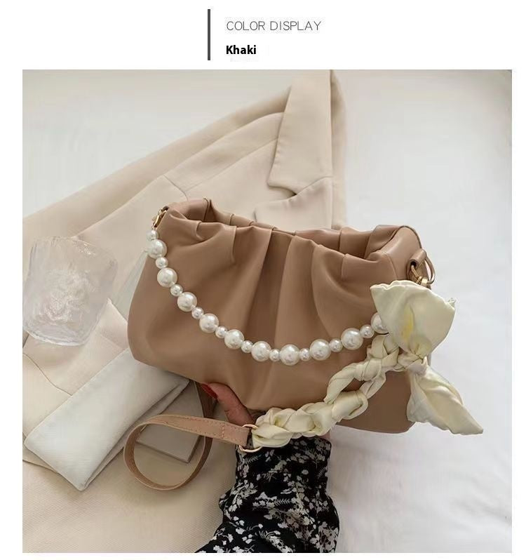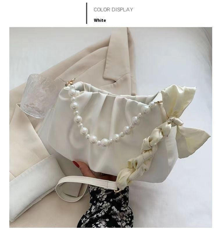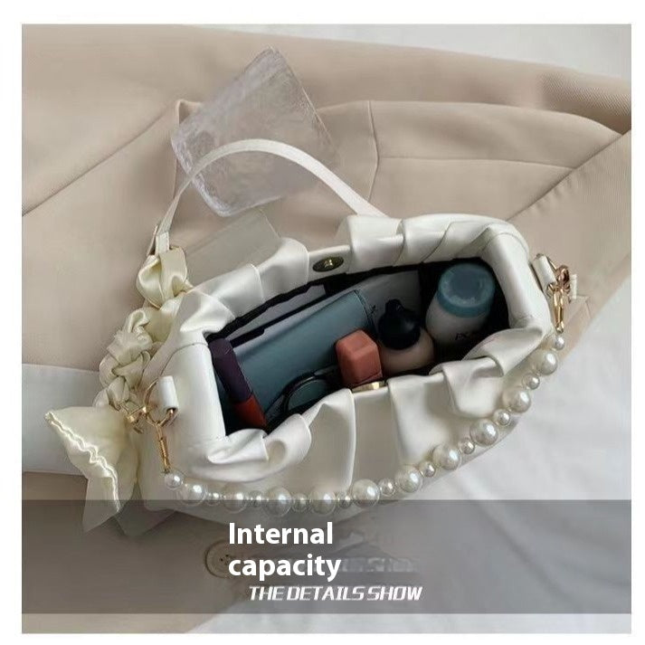 New Summer High-grade Pearl Pleated Cloud Shoulder Handbag