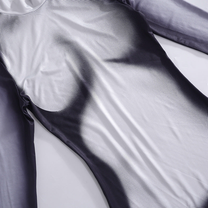 Temperament Body Printed Long-sleeved Slim Round Neck