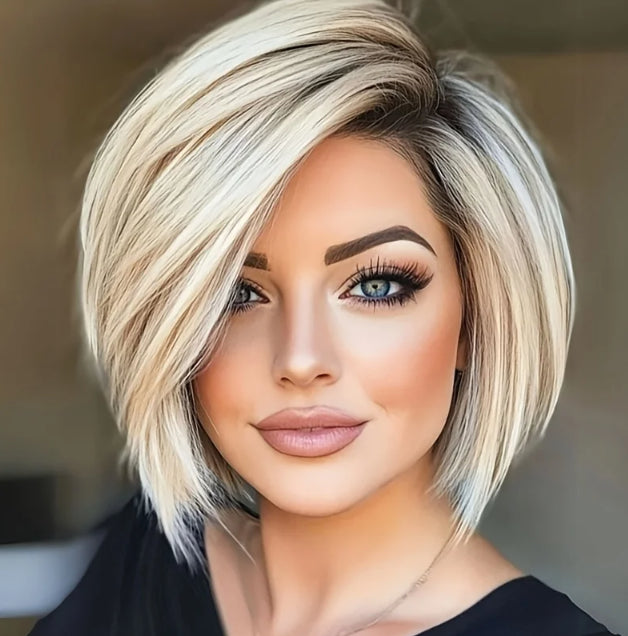 Women's Short Straight Hair Fashionable Golden Wig Dyed Mesh Women's Headgear